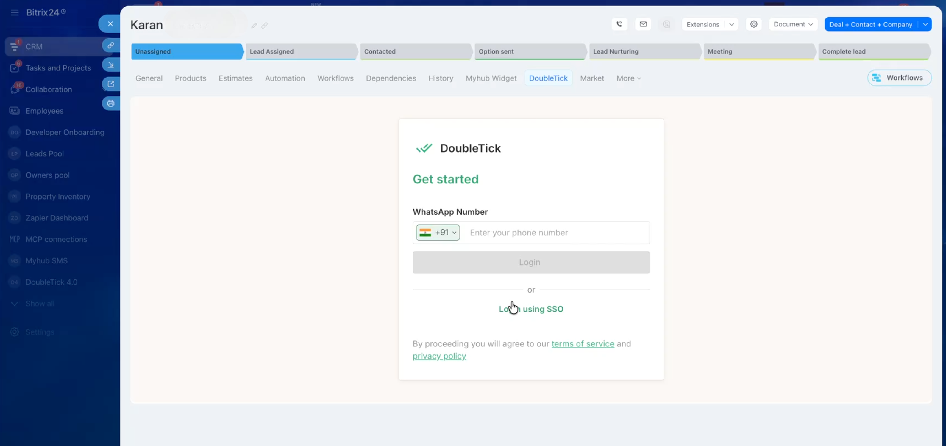 Connect Bitrix24 with DoubleTick to streamline WhatsApp communication, manage conversations within CRM, and improve response efficiency for your leads and customers.